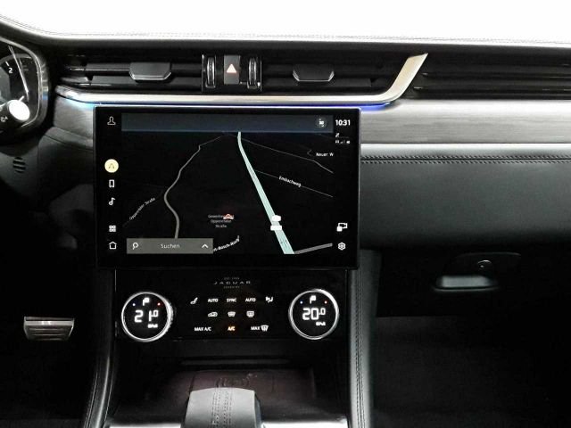 Ablagefächer seitlich in Mittelkonsole, Adap. Geschwindigkeitsreg. mit Stauass., Airbag: Front- und Seitenairbags vorne, Airbag: Kopfairbag vorn und hinten, Alarmanlage, perim. inkl. Wegfahrsperre, All Surface Progress Control, Allradantrieb AWD, Amazon Alexa, Ambiente Innenraumbeleuchtung konfigur., Analoge Rundinstrumente mit 7" TFT-Displ, Anhänger-Stabilitätshilfe (TSA), Animierte Blinklichter, vorne und hinten, Antiblockiersystem (ABS), Aufmerksamkeitsassistent, Autonomer Notfall-Bremsassistent, Begrüßungslicht, Berganfahrhilfe, Bremsbelagverschleißanzeige, Bremsen: Bremssättel unlackiert, Bremsen: Jaguar Sportbremsanlage, Bremsleuchte dritte, Dachhimmel in Morzine (Stoff)- L. Oyster, Dekorelemente in Engineered Wood, Differenzial mit Torque Vectoring, Drehzahlmesser, Dynamische Stabilitätskontrolle (DSC), Edelstahl-Ladekantenschutz, Einparkhilfe vorne und hinten, Einstiegsleisten hinten aus Edelstahl, Einstiegsleisten mit Jaguar Schriftzug, Elektrische Parkbremse (EPB), F-Pace Emblem, Fensterheber vorne und hinten, elektris., Fernlicht mit Abblendautomatik (AHBA), Getriebe: 8-Gang-Automatikgetriebe, Handschuhfach verriegelbar, Heckklappe elektrisch, Heckscheibe, beheizbar, ISOFIX-Verankerung für Kindersitze hint., Innenrückspiegel automatisch abblendend, JaguarDrive Control, JaguarDrive Selector, Keyless Entry, Kindersicherung, elektrisch, Klimaautomatik (2-Zonen), Kollisionswarnsystem bei Rück.m.Notfall., Kopfstützen vorne und hinten, LED-Heckleuchten, LED-Scheinwerfer mit LED-Signatur, Leichtmetallfelgen 20" "Style 5036", Lenksäule manuell verstellbar, Metalldach, Mittelkonsole mit Armlehne, Multifunktions-Lederlenkrad, Navigationssys.:Pivi Pro mit Navigation, Nebelschlussleuchten, Paket: Online/Paket mit Datatarif, Radio: Meridian Soundsystem400 W, 13 L., Radiozubehör: Android Auto, Apple CarPla, Radiozubehör: DAB-Radioempfänger (DAB+), Radiozubehör: Sprachsteuerung, Regensensor, Räder: Reifendruckkontrollsystem (TPMS), Räder: Sommerreifen, Rückfahrkamera, Rücksitze im Verhältnis teilbar, mit Arm, Schaltwippen in mattem Chrom, Secure Tracker, Sensorgesteuertes Fahrlicht, Servolenkung, elektromechanisch (EPAS), Sicherheitsgurte mit Gurtstraffern, Sitze: Vordersitze, 14-fach mit Memory, Sportliche Edelstahlpedalerie, Spurhalteassistent, Stopp/Start-System, Toter-Winkel-Spurassistent inkl. Annähe., Toter-Winkel-Warnsystem bei Türöffnung, Valet-Modus, Verkehrszeichenerkennung, Verzurrösen im Laderaum, Zentralverriegelung mit Funkfern