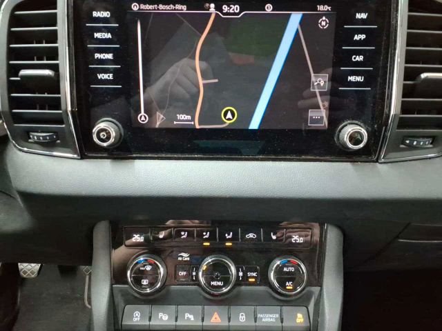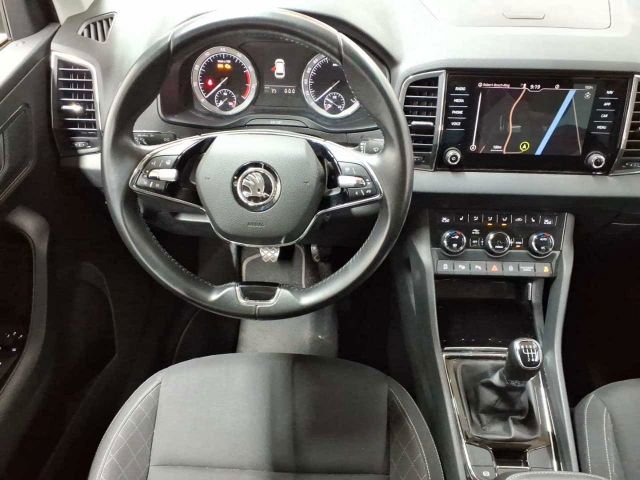 Ablagefach auf dem linken Radhauskasten, Ablagefach auf der Armaturentafel Geschl, Ablagefächer hinter den Radhauskasten, Ablagen, Airbag Fahrer- und Bei.seite"Full-Size", Airbag, Fahrer-Knieairbag, Airbag, Kopfairbagsystem, Airbag, Seitenairbags vorne, Allergenfilter, Antiblockiersystem (ABS), Antriebs-Schlupf-Regelung, Außensp. el. einst./beheizb. m. Seitenbl, Außenspiegel elektrisch anklappbar, Berganfahrassistent, Bremsassistent, hydraulisch, Care C.: Proakt. Dienste Laufz. 14 Jahre, Cargo-Elemente im Kofferraum, Dachreling, schwarz, Dekoreinlage Ambition, Drehzahlmesser, Dritte Bremsleuchte, EASY START, schlüsseloses Start-Stopp, ESC Elektron. Stabilisierungskontrolle, Elektr.Parkbremse inkl.Auto-Hold-Funk., Elektronische Querdifferenzialsp. (XDS+), Fahrlichtassistent und Regensensor, Fensterheber elektrisch vorn und hinten, Frontradarassistent inkl.City-Notbrensfu, Geschwindigkeitsregelanlage, Getriebe: 6-Gang-Schaltgetriebe, Getönte Scheiben, Handschuhfach beleuchtet, Heckscheibe beheizbar, Heckscheiben-Wisch-/Waschanlage, ISOFIX-Vorbereitung a.d. äußeren Rücksi., Innenspiegelabblendung, automatisch, Kofferraumabdeckung, fest, Komfort Telefonfreisprecheinrichtung, Kopfstützen vorn und hinten höhenverst., LED-Heckleuchten, Lederlenkrad mit Multifunktionstasten, MSR (Motorschleppmomentregelung), Maxi-Dot-Display, Mittelarml. hi. m. Durchlademöglichkeit, Mittelarmlehne vorn, inkl. Ablagefach, Nebelscheinwerfer, Netzprogramm im Kofferraum, Ottopartikelfilter, Parksensoren hinten, Polster: Stoff, Radioz.: USB-Anschluss i der Mittellkon., Radiozubehör: 8 Lautsprecher, Radiozubehör: Digitaler Radioempfang DAB, Reifen-Mobilitätsset, Reifendrucküberwachung, Rücksitzlehne 60:40 geteilt umklap., Scheibenwaschdüsen beheizt, vorn, Servolenkung, elektromechanisch, Sicherheitsgurte Karoq, Sitze: Einst. Lendenwirbels. i. d. Vord., Sitze: Vordersitze, höheneinstellbar, Skoda Care Connect, Speedlimiter, Start/Stopp-Automatik/Bremsenergierückg., Steckdose 12V, Stoßfänger teilweise in Wagenfarbe lack., Verzurrösen im Kofferraum, Wegfahrsperre, Zentralverriegelung m. Funkfernbedienung, eCall, Gepäcknetztrennwand, Klimaanlage Climatronic (2-Zonen), LED-Hauptscheinwerfer mit LED-Tagfahr., Lackierung: Metallic, Lenkrad beheizbar, Maxi-Dot-Display farbig, Müdigkeitserkennung, Paket: Business Amundsen, Parklenkassistent 3.0 ink. Parksen. vorn, Parksensoren vorn & hinten, Proakt.Insassenschutz inkl.Seitenairbags, Räder: 17" Leichtmetallfelgen "Triton&